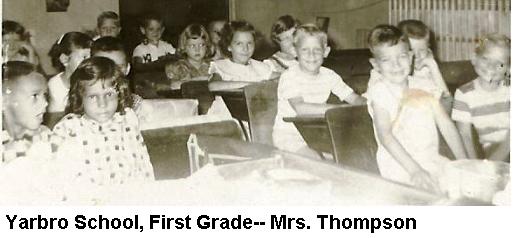 Yarbro School, First Grade-- Mrs. Thompson Front row: far right Mike Baughman and Steve Brister Second row: far right David Miles and Don Gaines Third row: far right Mary Jo Johnson and I think Joyce Hulsey is next to Mary Jo